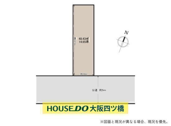 土地面積 公48.43㎡(14.65坪) 接道 南東側幅 約5.0m 間口 約3.79m