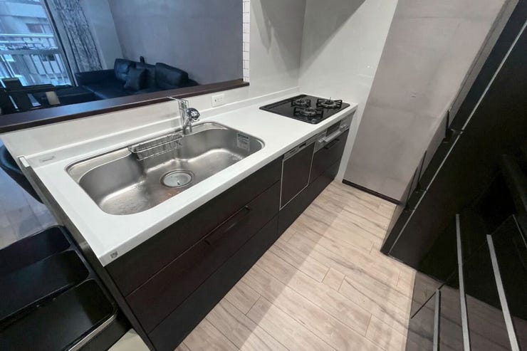 キッチンはコンパクトながらも食洗機やグリル、カップボードなど設備もまとまっています!